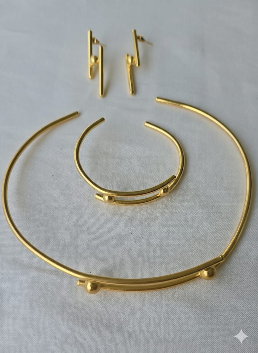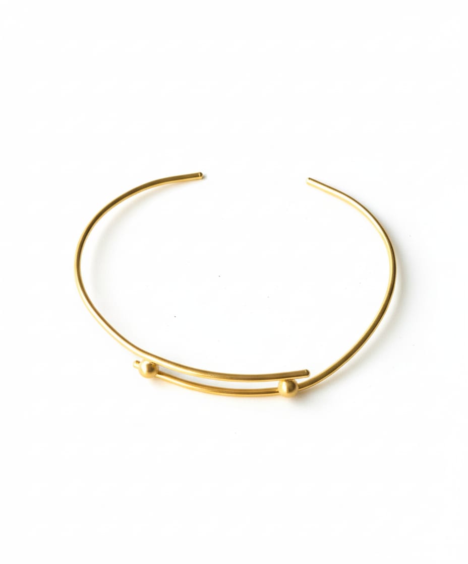 Ces boucles d’oreilles pendantes présentent un design minimaliste et géométrique. Elles sont composées de deux barres cylindriques décalées, reliées au centre par une petite sphère. Ce bijou est plaqué or pour un éclat moderne et chic.
