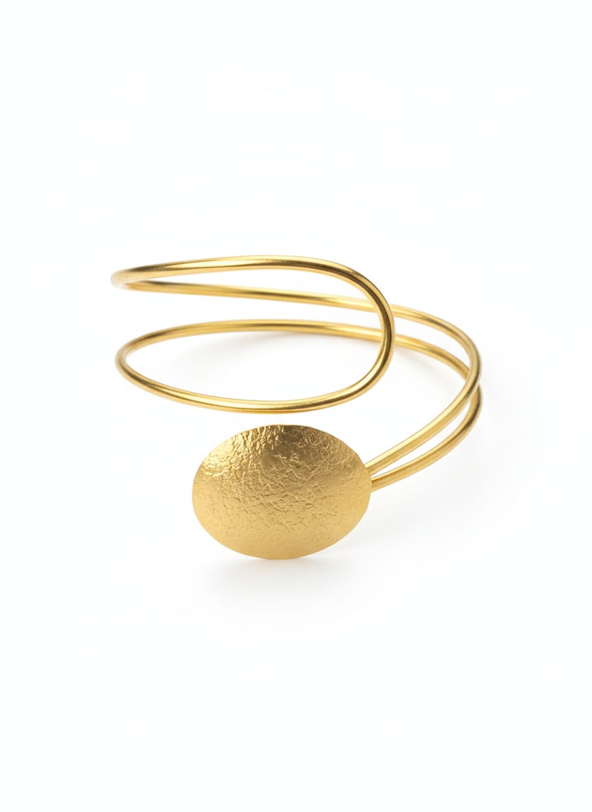 Paire de puces d’oreilles au motif solaire stylisé, caractérisée par des rayons fluides et irréguliers pour un éclat maximal. Ces bijoux sont en laiton plaqué or, garantissant une finition lumineuse et un style audacieux.