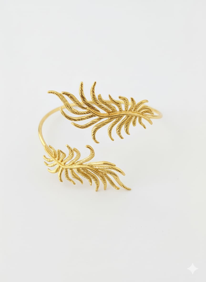 Ce bracelet de bras ajustable se distingue par sa silhouette torsadée et aérienne, rehaussée par un médaillon ovale à la finition martelée. Il est élégamment plaqué or pour un look raffiné et intemporel.